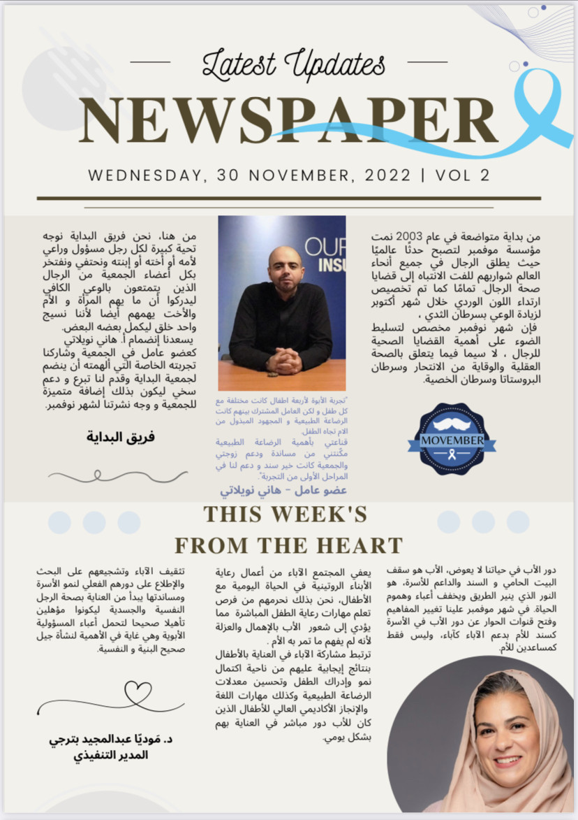مرحبا بكم في الإصدارالأول للنشرة الشهرية لجمعية البداية للرضاعةال